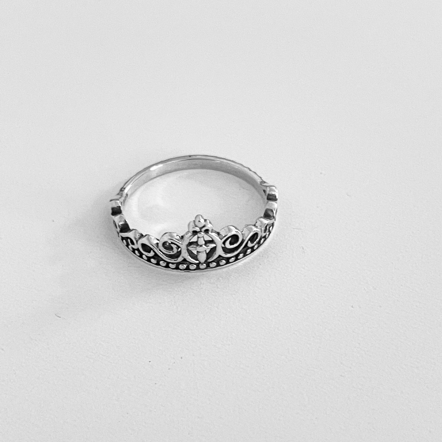 Cross Crown Sterling Silver Ring, Dainty Ring, Cross Ring, Crown Ring, Swirl Ring, Princess Ring, Stacking Ring, Statement Ring