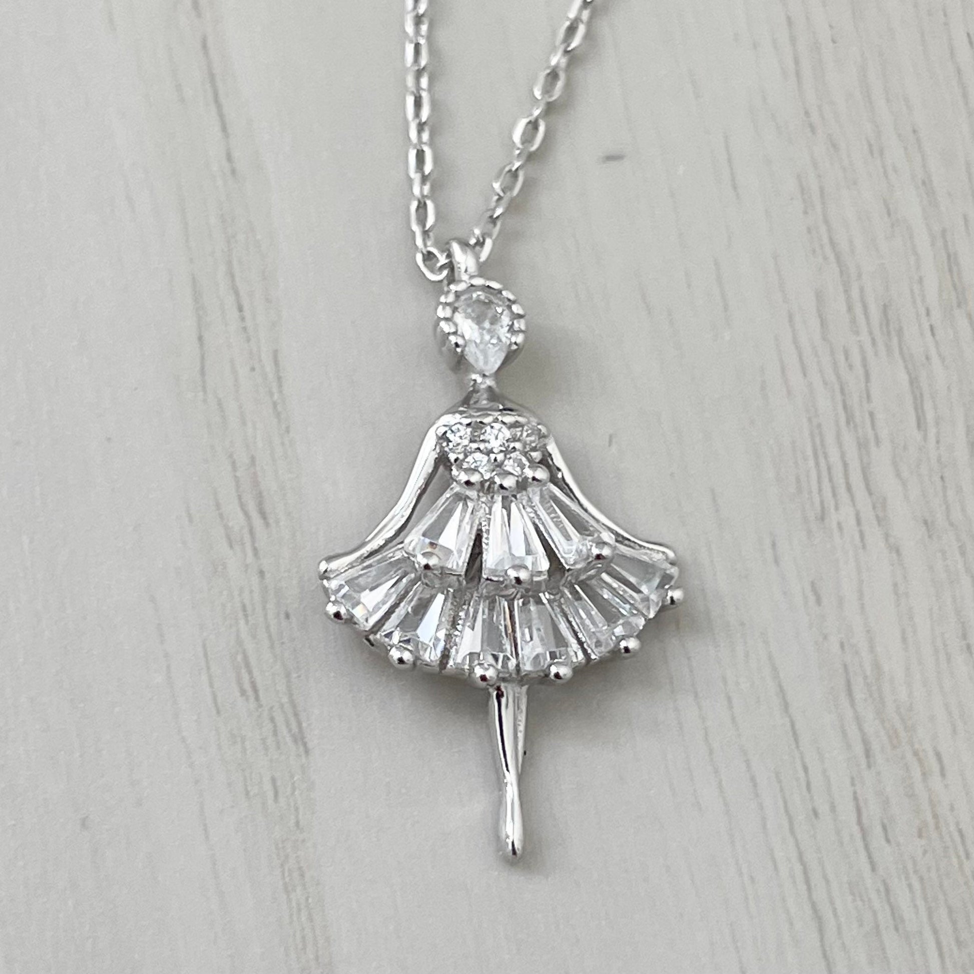 Sterling Silver CZ Ballerina Pendant with Necklace, Silver Necklace, Ballet Gift, Dance Recital, Gift for Ballerina, Love Necklace Silver Chain Necklace, Dance Team Necklace.