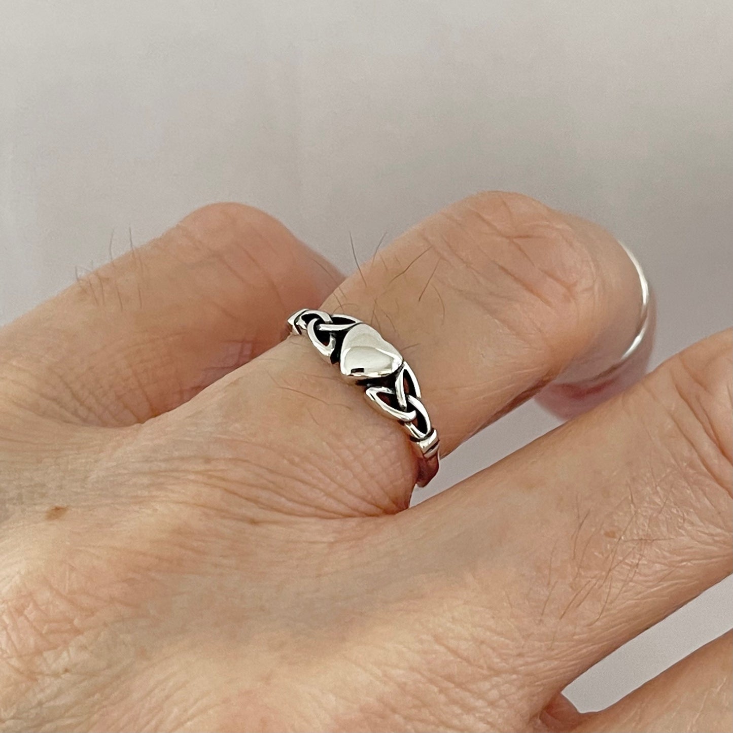 Dainty Celtic and Heart Sterling Silver Ring, Silver Heart Ring, Triquetra Heart Ring, Celtic Ring, Promise Heart Ring, Promise Love Ring.