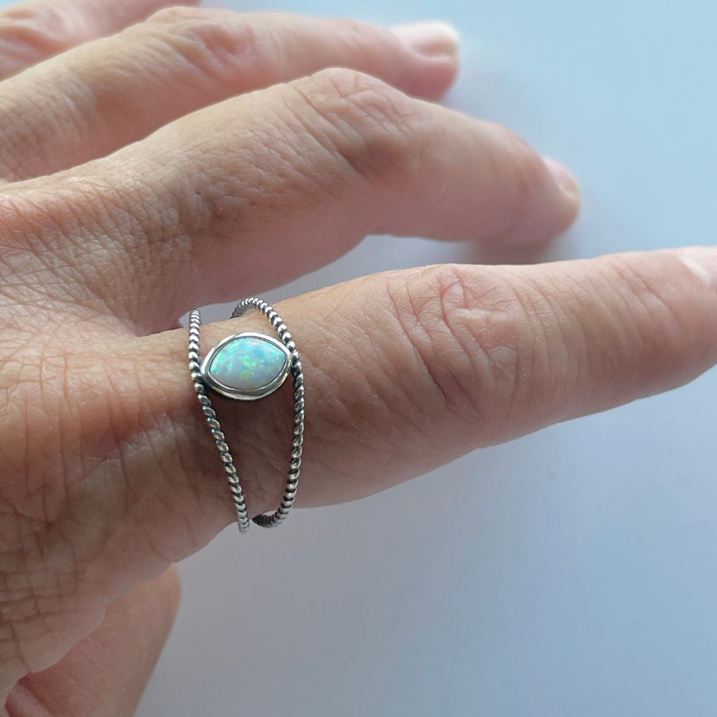 • Sterling Silver Fire Opal Rope Eye Ring, Boho Ring, Opal Silver Ring, Opal Eye Ring, Statement Ring, Silver Rope Ring, Simple Ring, may also be worn as a midi ring, 925 Stamped.