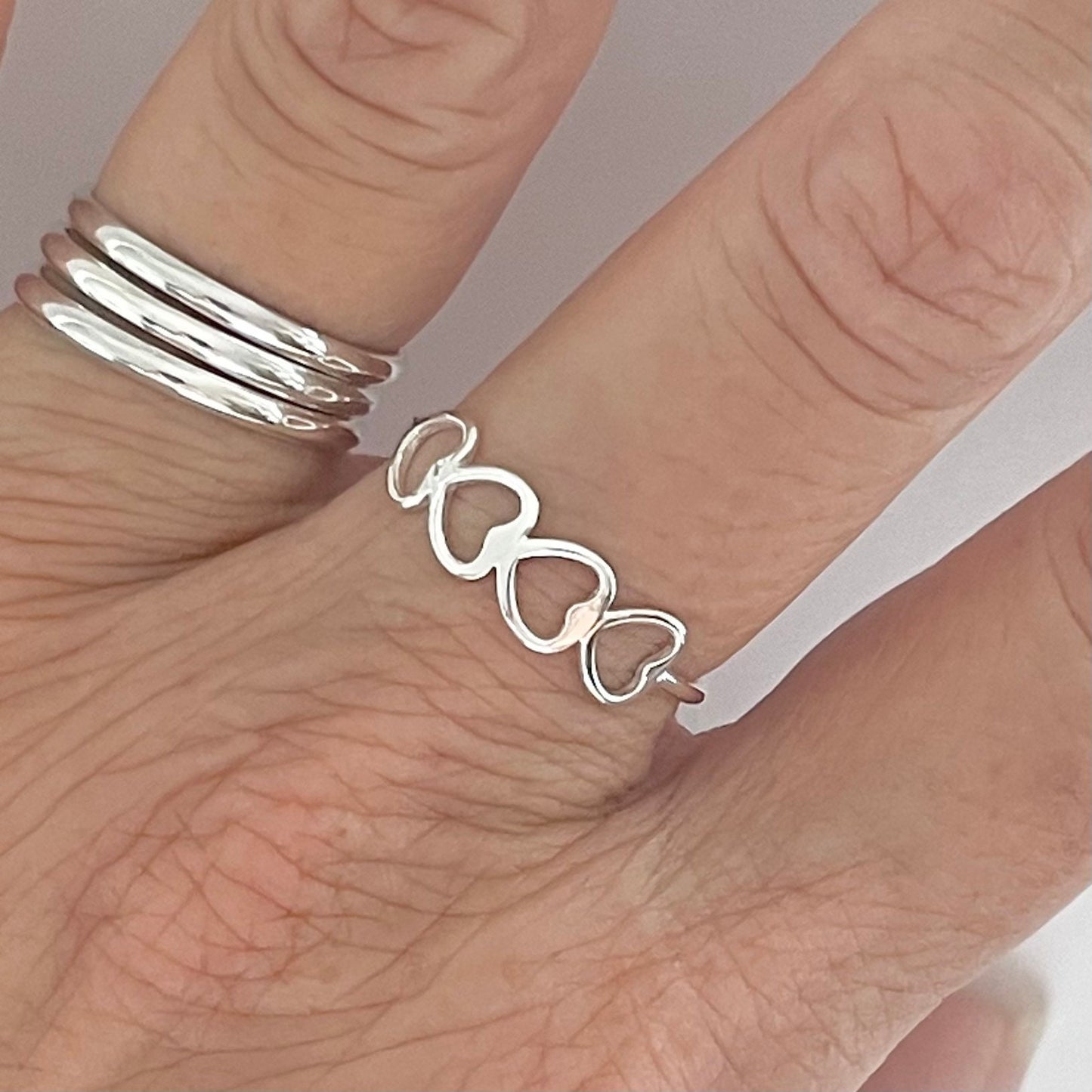 • Small Multiple Hearts Sterling Silver Ring, Silver Ring, Dainty Ring, Love Ring, Silver Hearts Ring, Stackable Ring, Promise Heart Ring, may also be worn as a midi ring, or as a thumb ring., 925 Stamped.