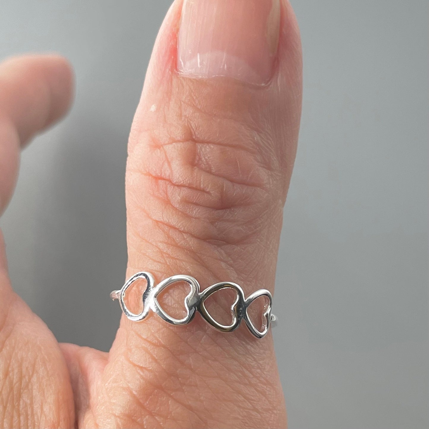 Four Hearts Dainty Sideway Sterling Silver Ring, Silver Ring, Love Ring, Silver Hearts Ring, Dainty Ring, Promise Heart Ring, Stackable Ring