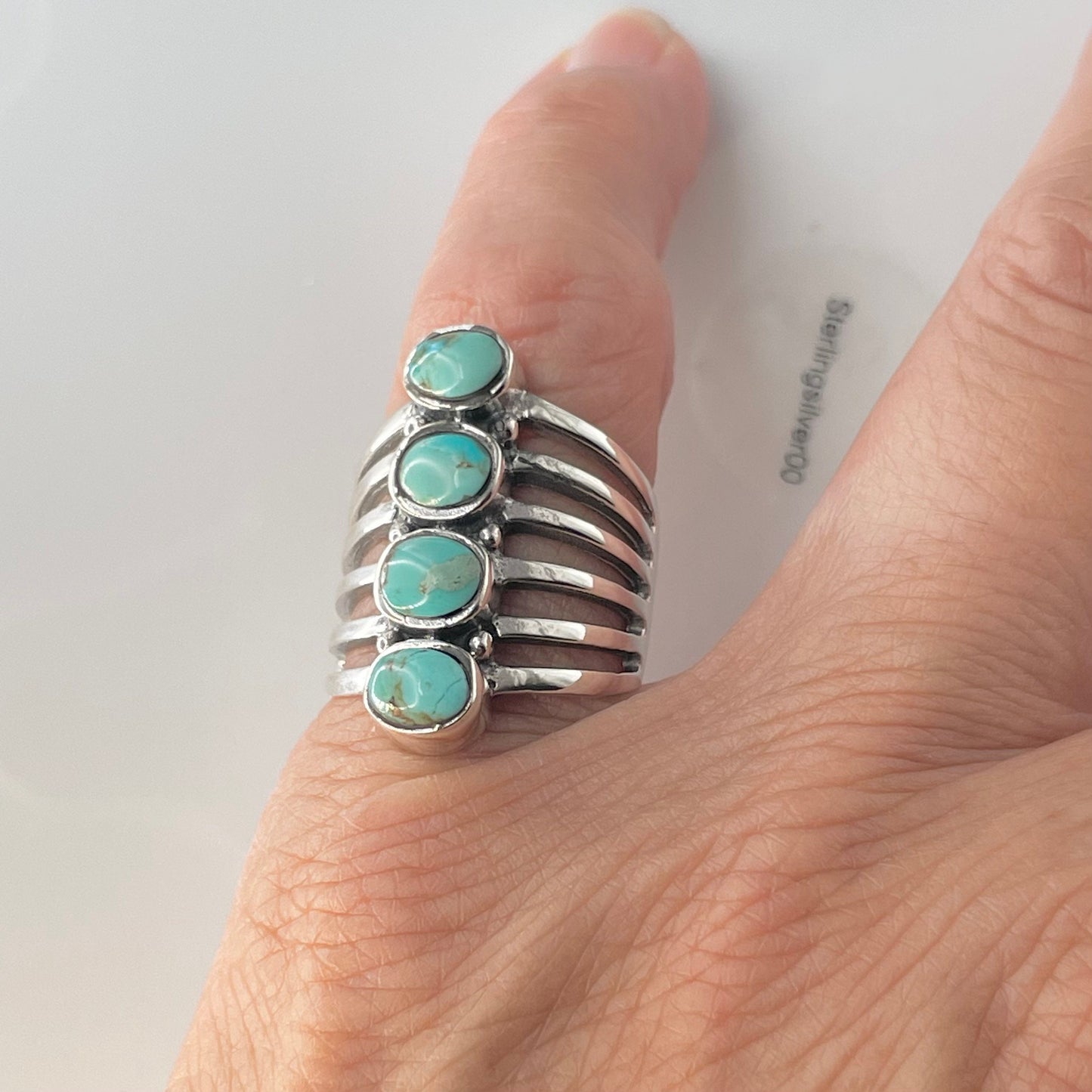 • Sterling Silver Multiple Stone Genuine Turquoise Ring, Boho Ring, Silver Ring, Turquoise Ring, Statement Ring, Silver Turquoise Ring, may also be worn as a midi ring, or as a thumb ring, 925 Stamped