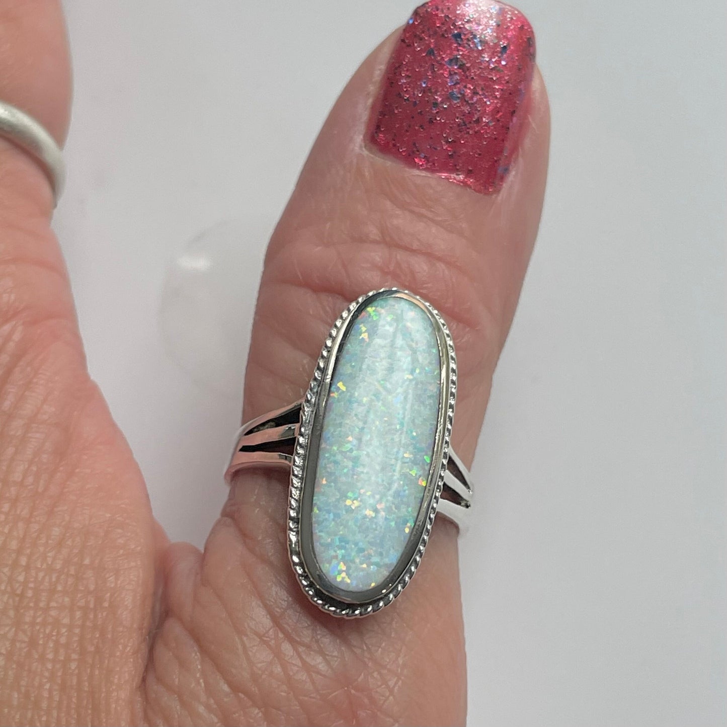 • Sterling Silver Large Beautiful Oval White Lab Opal Ring, Silver Opal Ring, Boho Ring, Statement Ring, Friendship Ring, Loyalty Ring, Silver Ring, Promise Ring, can be worn multiple fingers, 925 Stamped