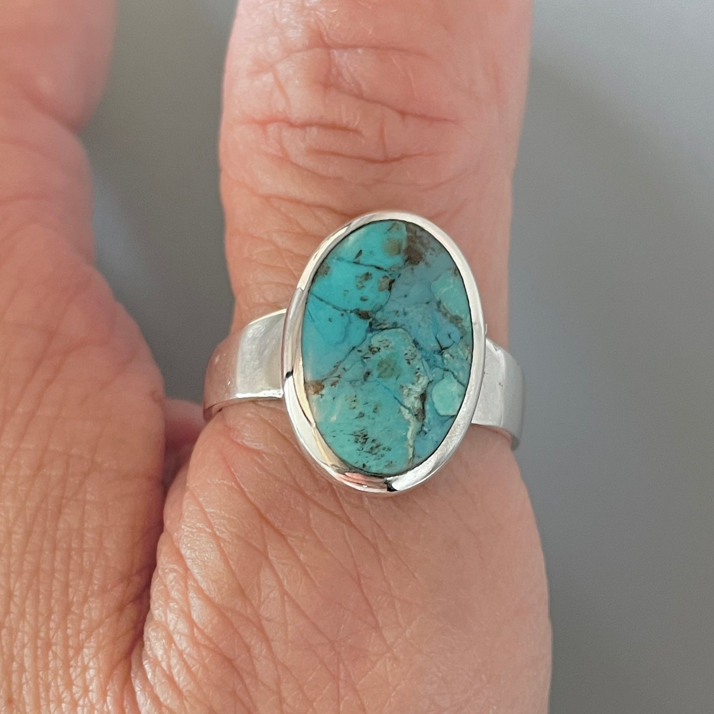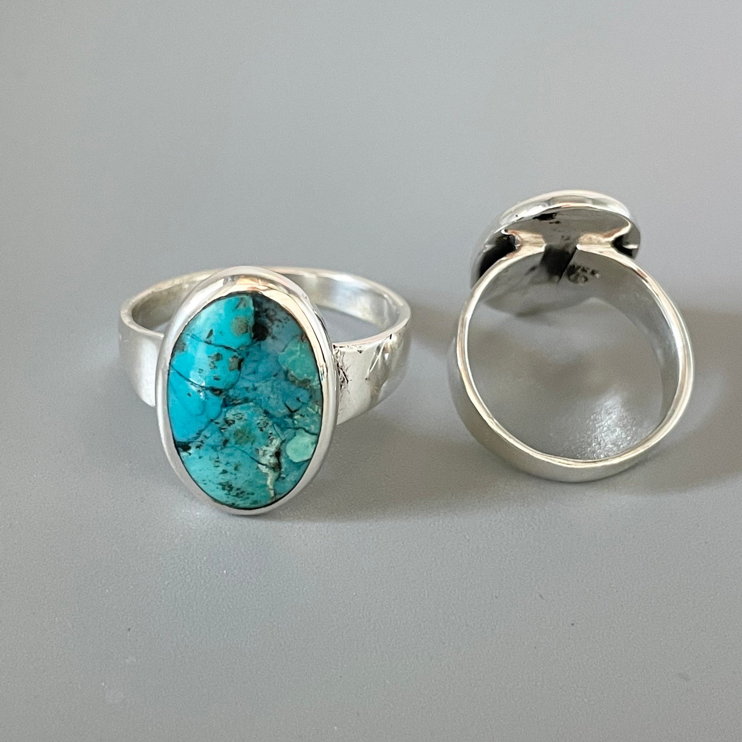 Medium Genuine Turquoise Sterling Silver Ring, Oval Silver Ring, Promise Ring, Turquoise Ring, Silver Ring, Boho Ring, Simple Ring
