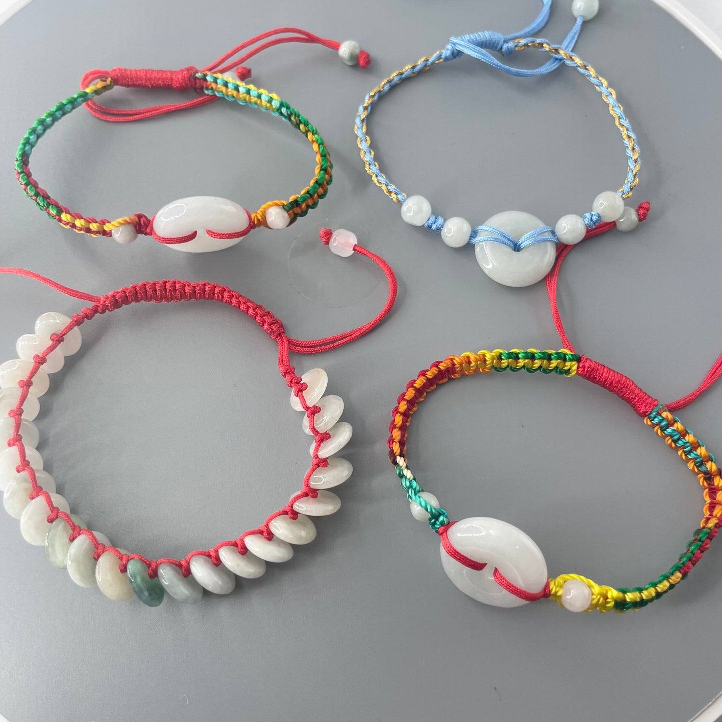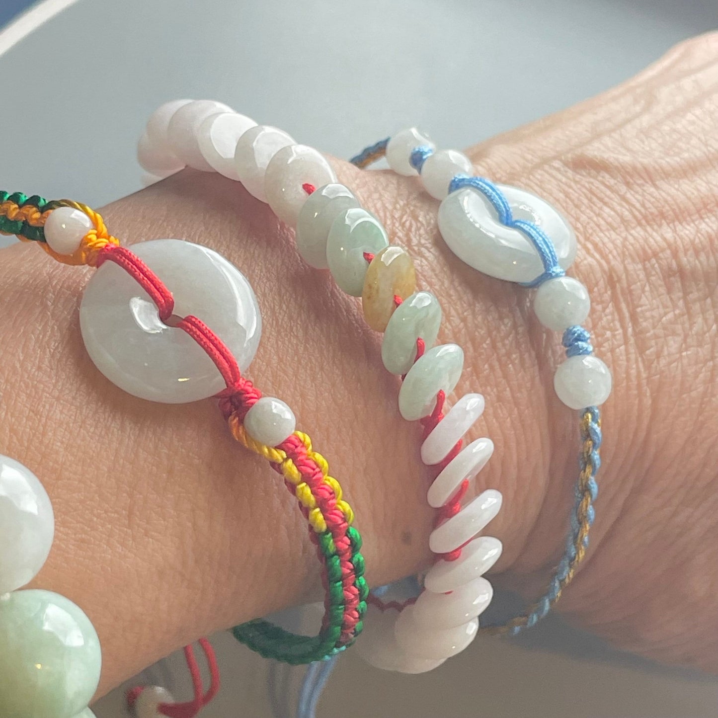 • Medium Natural Jade Donut Bracelet with Red, Blue String Bracelet Unisex Jade Anklet Jade Donut Bracelet, Natural Jade Bracelet, Promise Jade Bracelet, Adjustable Jade bracelet, Natural Jade Bracelet pattern of each Jade is different.