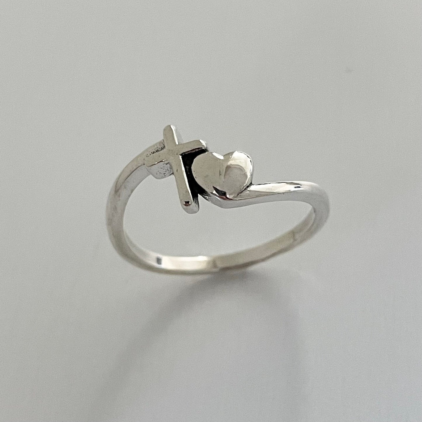 Sterling Silver Cross Heart Ring, Heart Ring, Heart Cross Ring, Cross Faith Ring, Promise Heart Rings, Cross Heart Love Ring, Relationship.
