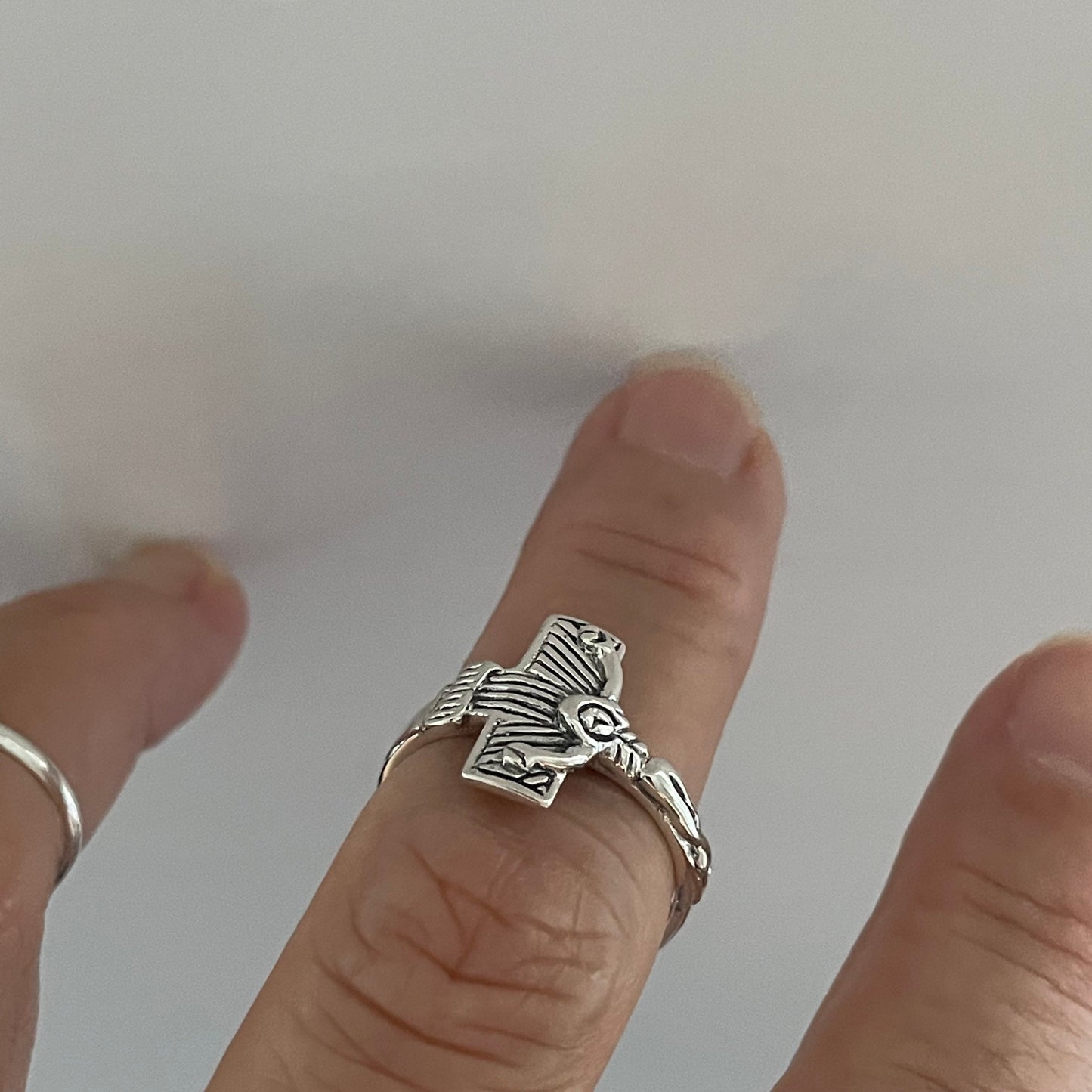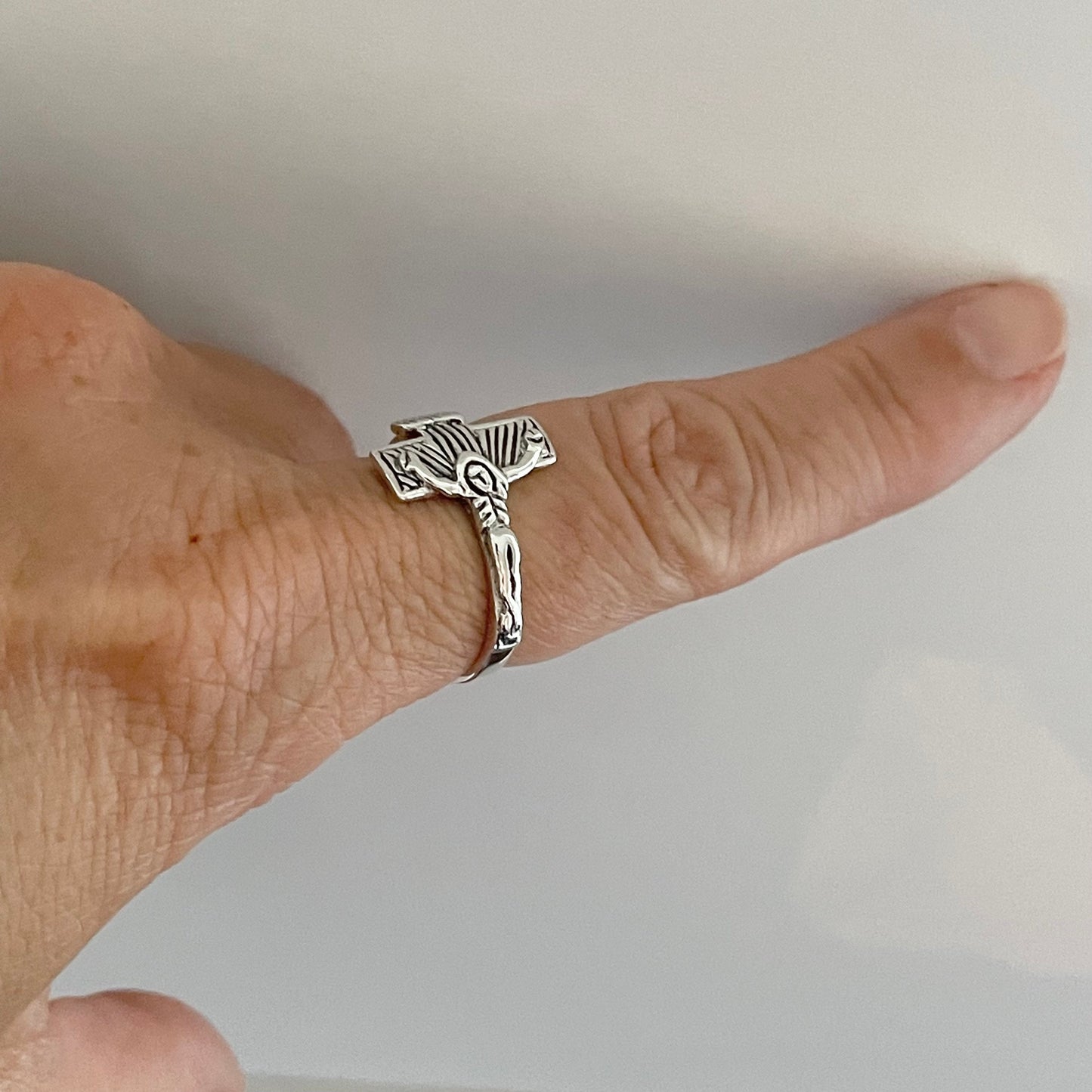 • Sterling Silver Crucifix Ring, Faith Ring, Love ring, friendship, silver, may also be worn as a midi ring, or as a thumb ring, 925 Stamped.