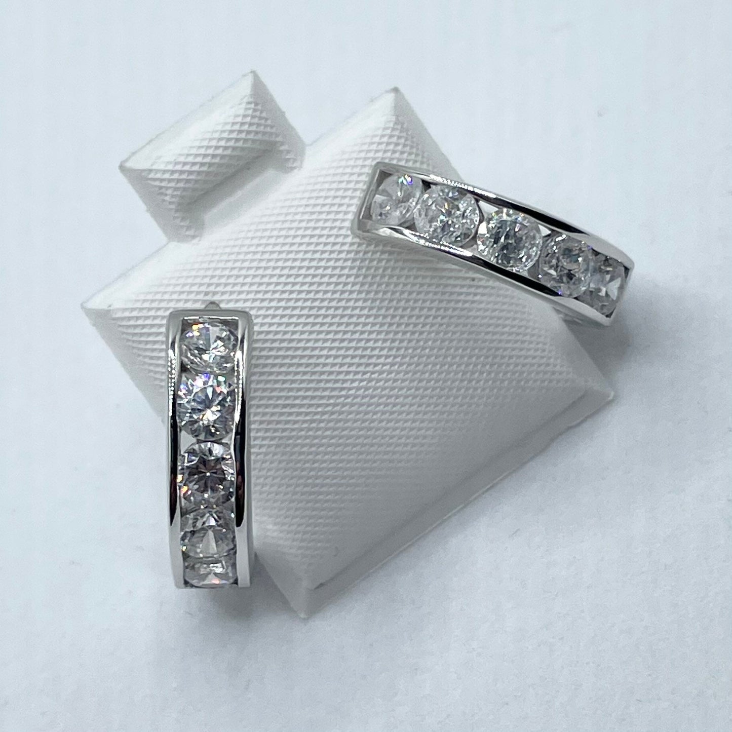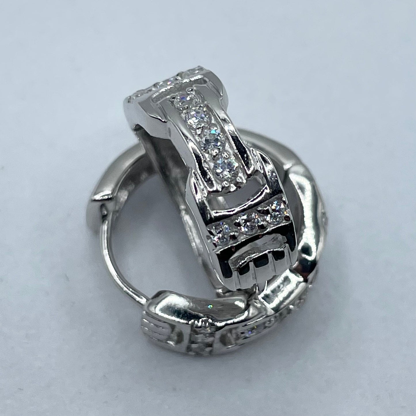 • Sterling Silver CZ 18mm or 19mm huggie earrings that you're looking for, it will go with any outfit you're wearing. silver earring, around earring, hoop earring, cubic Zirconia earring, huggie earring, love earring.