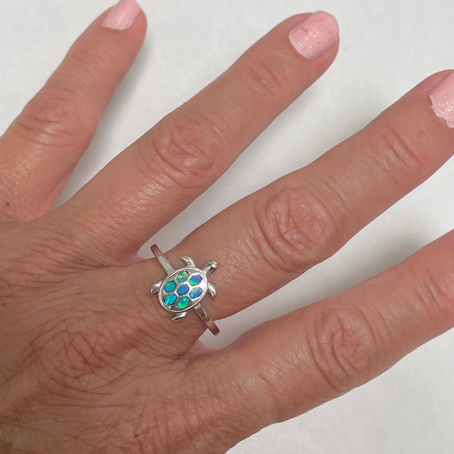 • Sterling Silver Precious White Lab or Blue Lab Opal Turtle Ring, Silver Ring, Opal Ring, Love Ring, Promise Ring, Turtle Ring, Ocean, Beach, Ring, Wedding Ring, can be worn multiple fingers, midi ring, thumb ring, 925 Stamped.
