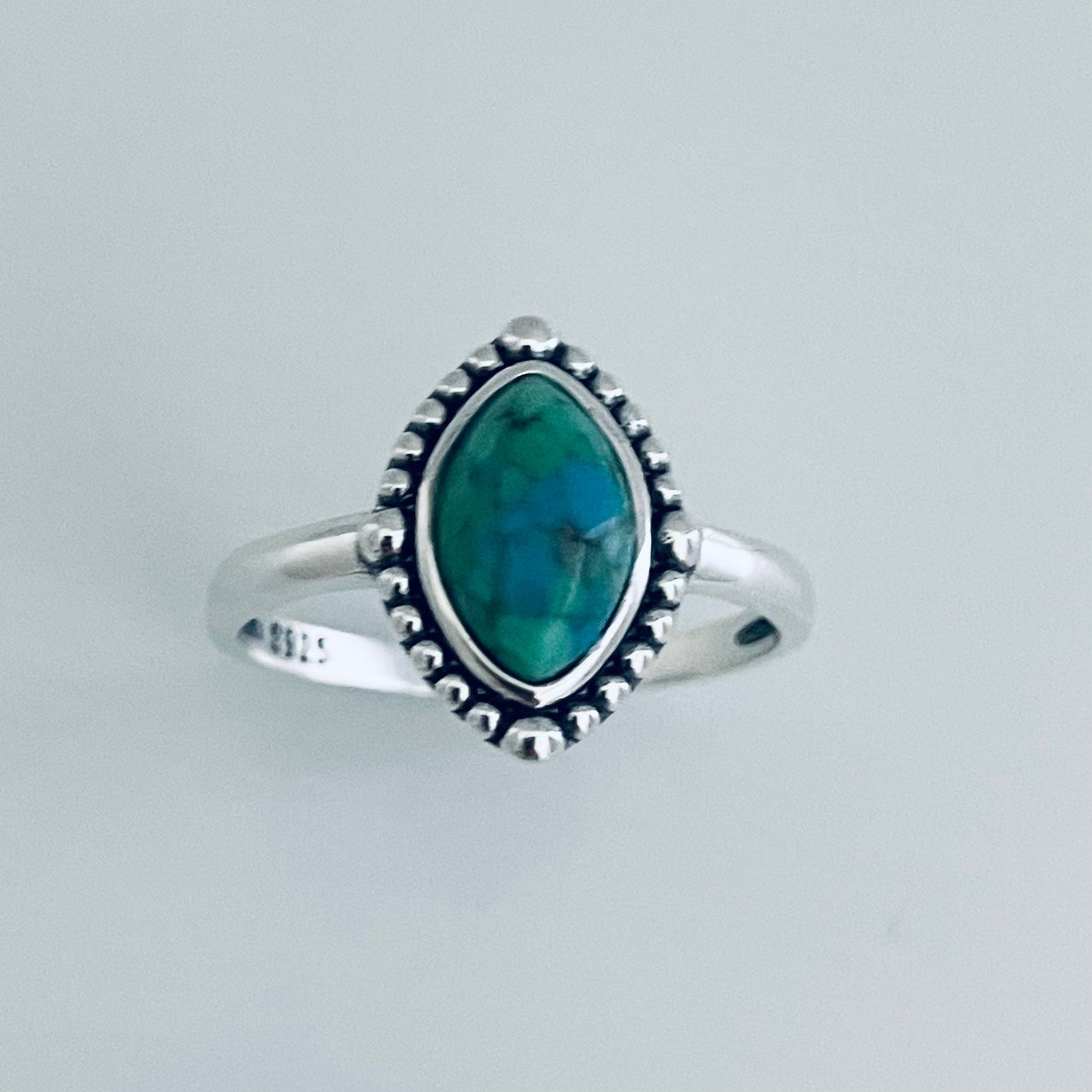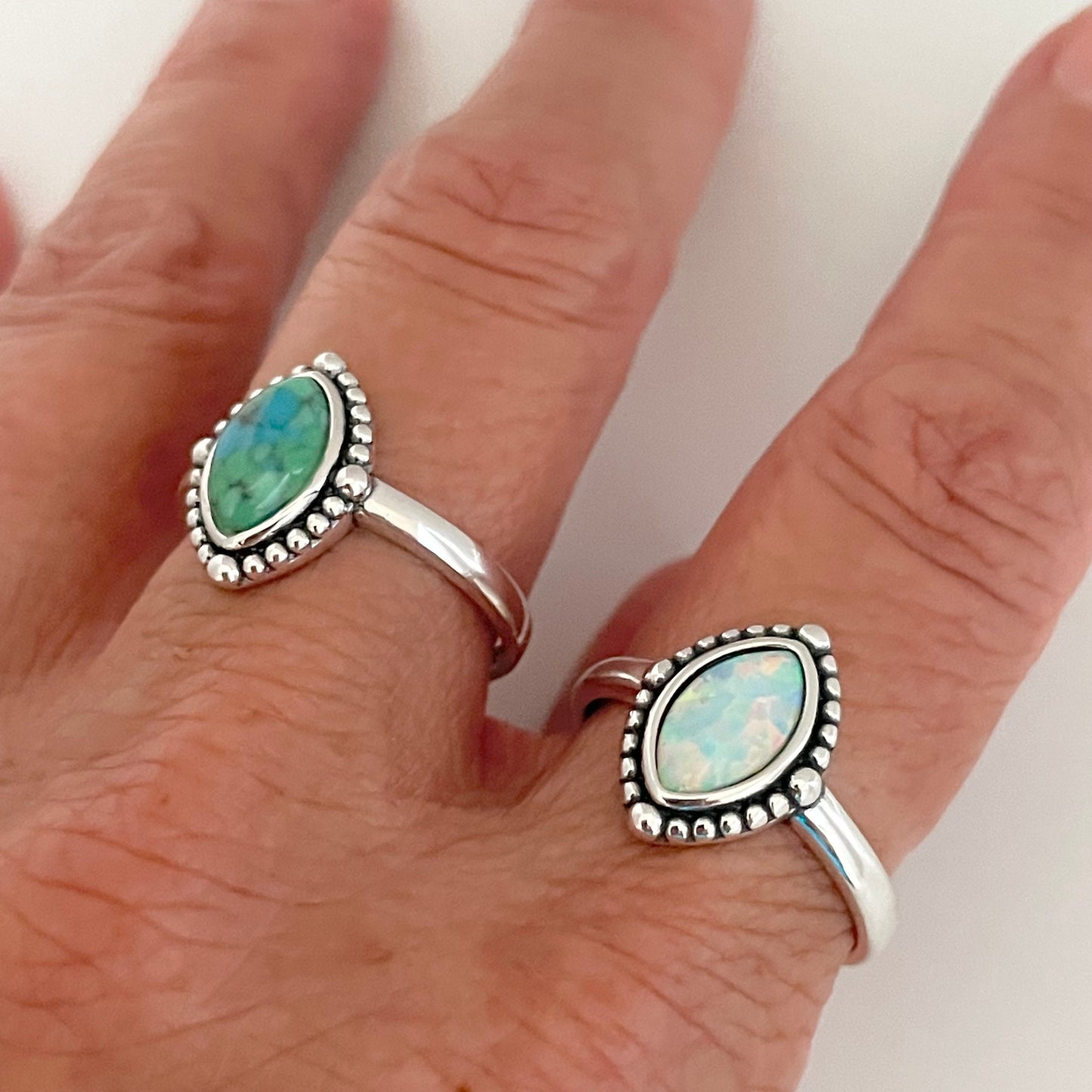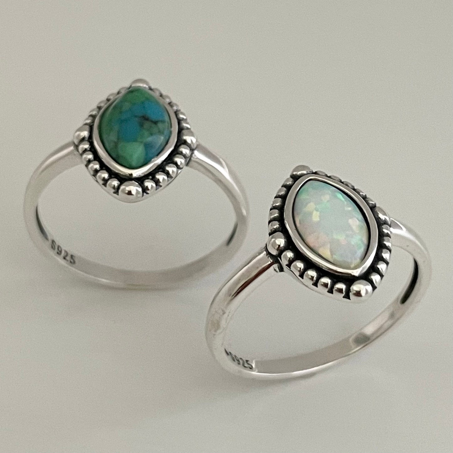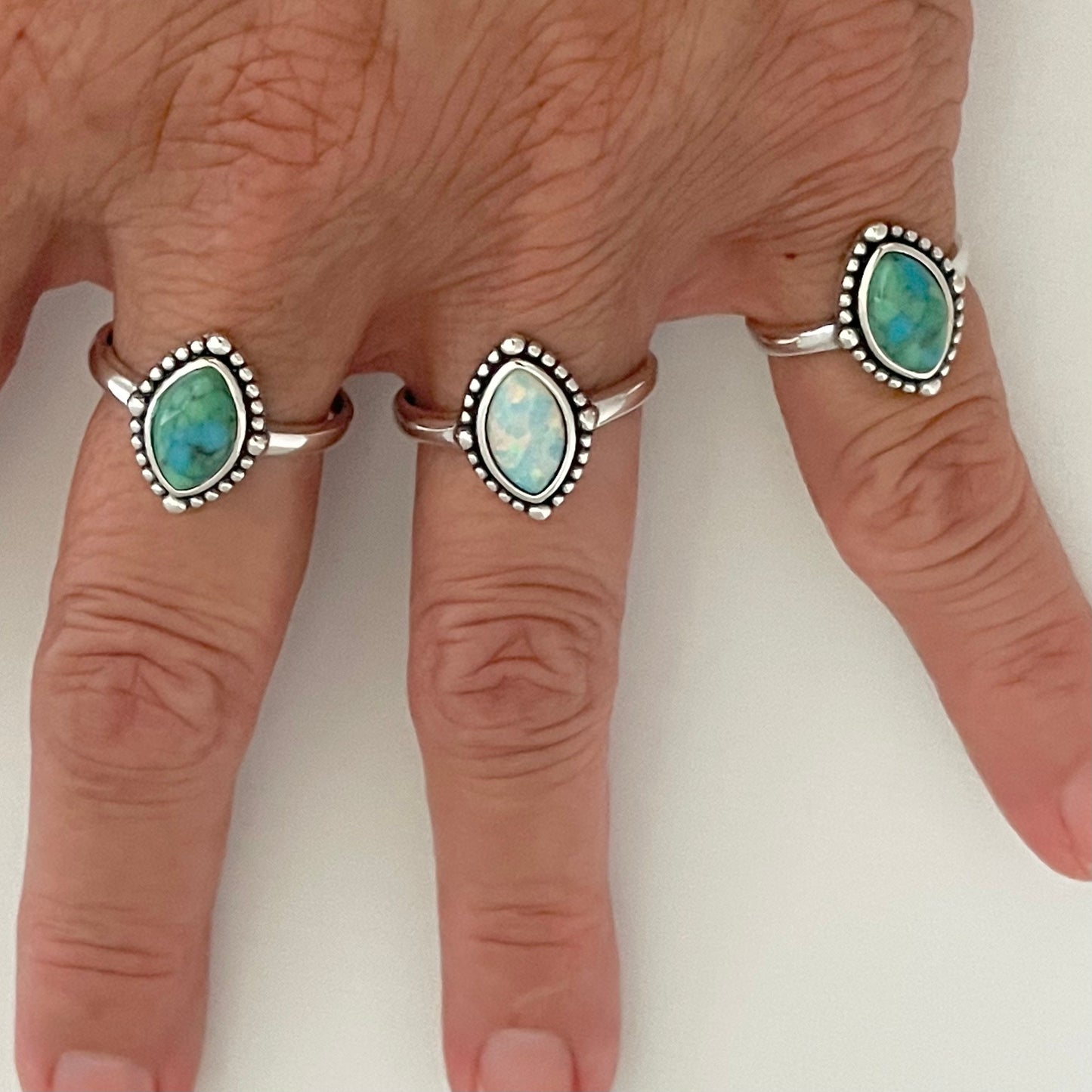 Sterling Silver Genuine Turquoise Ring, Diamond Shape Ring, Opal Beads Ring, Boho Ring, Turquoise Beads Ring, Love Ring, Promise Opal Ring.