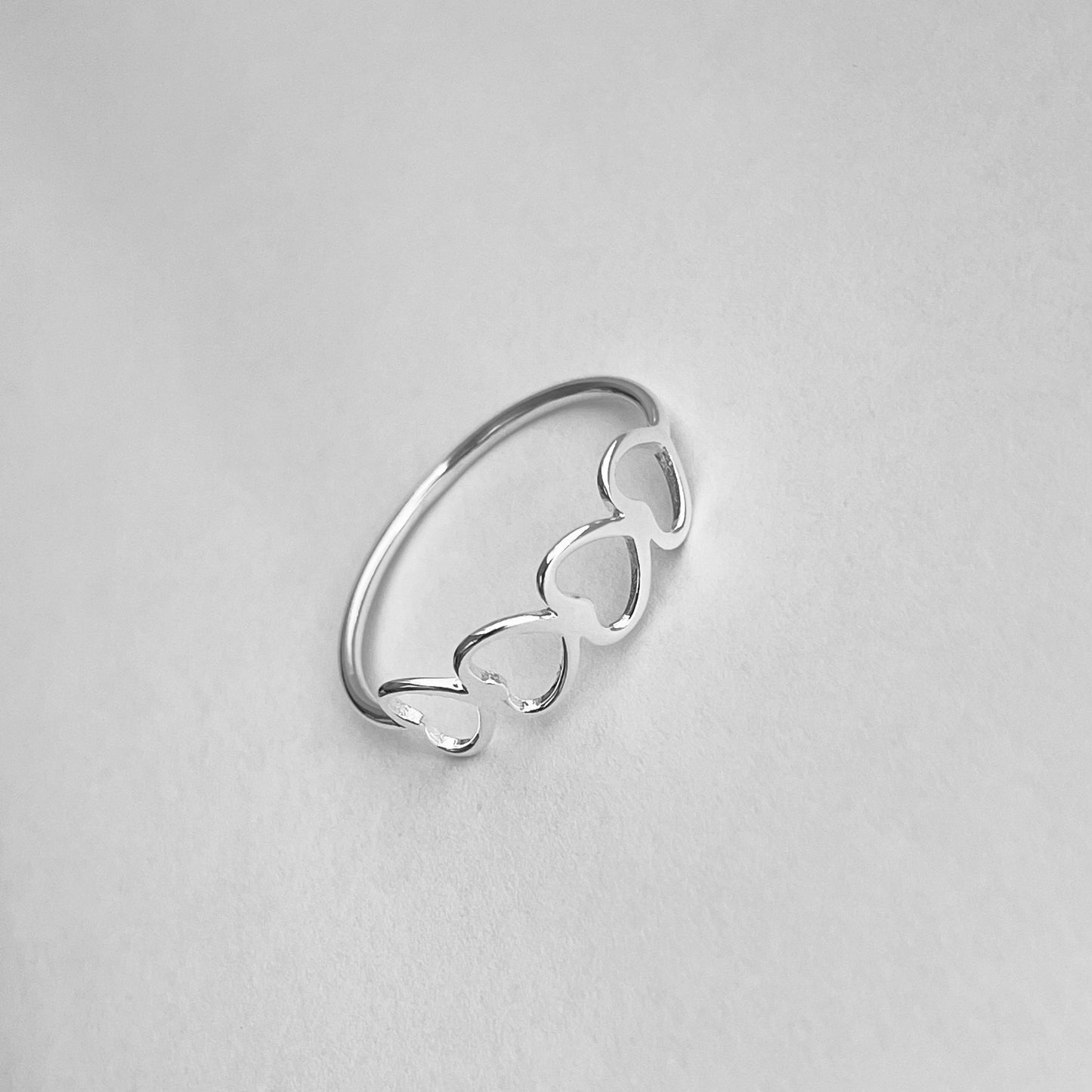 Sterling Silver Hearts Ring, CZ Hearts Dainty Sideway Ring, Promise Silver Heart Ring, CZ Love Ring, Silver Hearts Ring, Dainty Hearts Ring