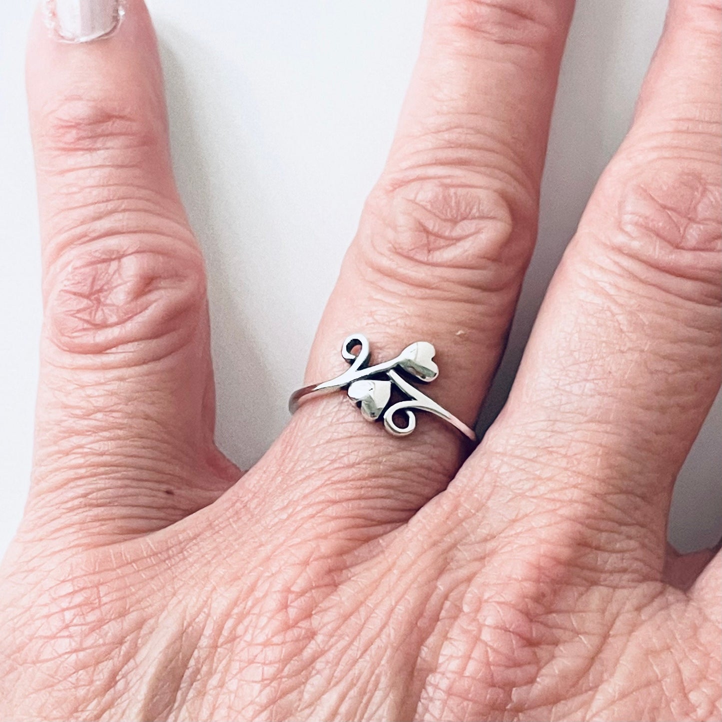 Sterling silver hearts Ring, promise Hearts ring, silver swirl ring, love ring, heart ring, silver ring, double heart ring, dainty ring.