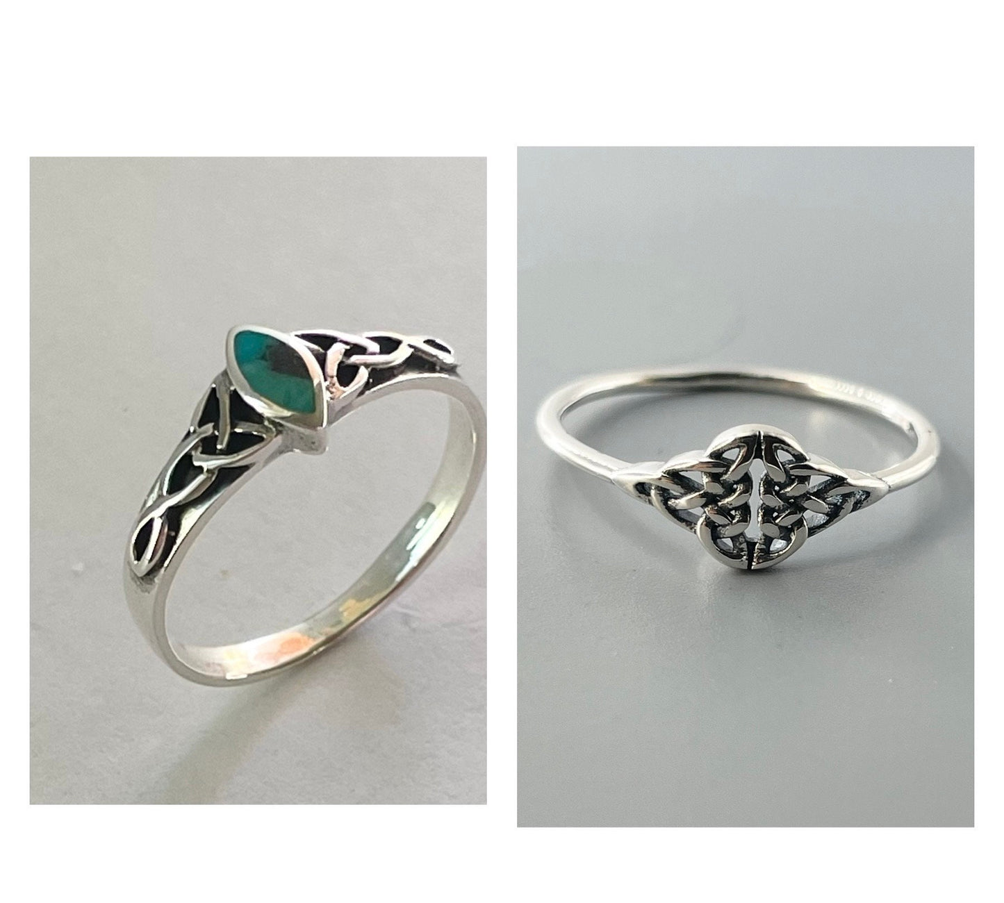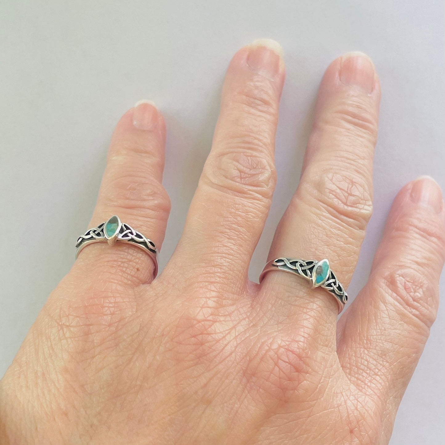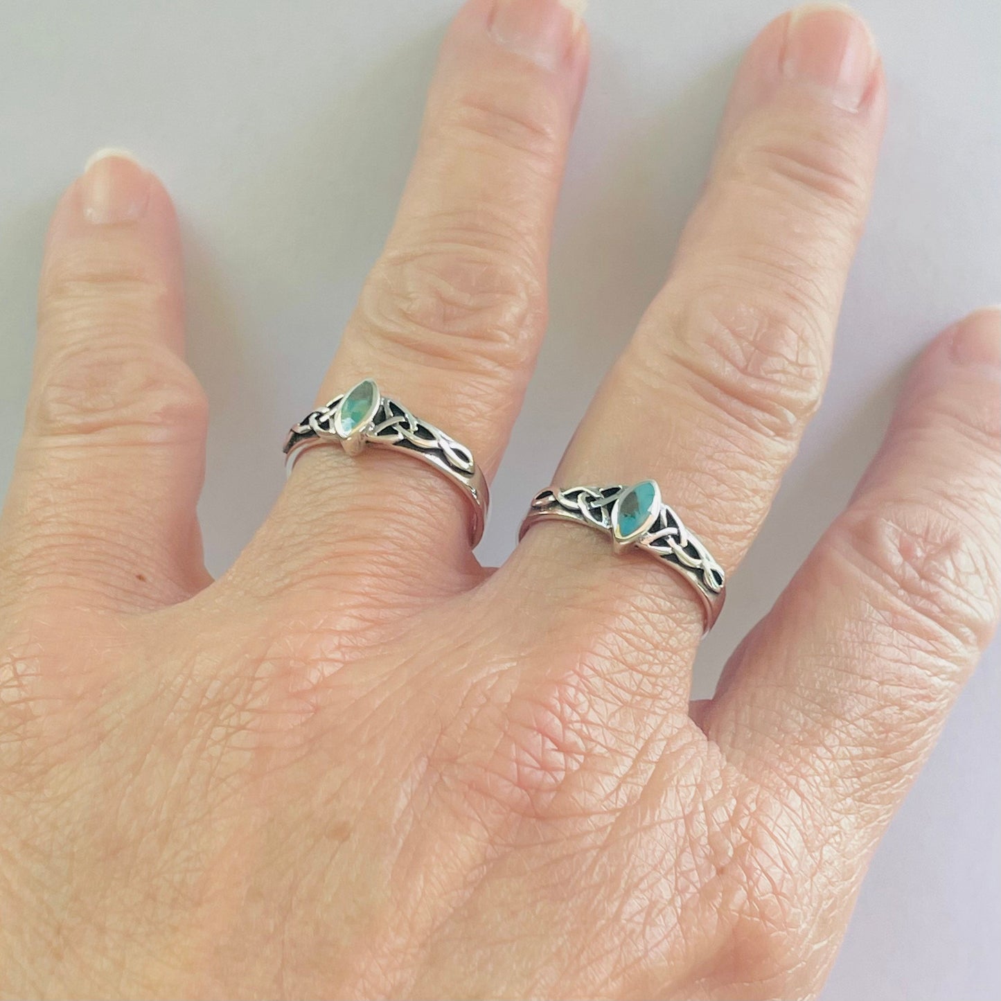 • Sterling Silver Marquis Shape Genuine Turquoise Ring, Stone with Celtic Ring, Boho Ring, Silver Ring,