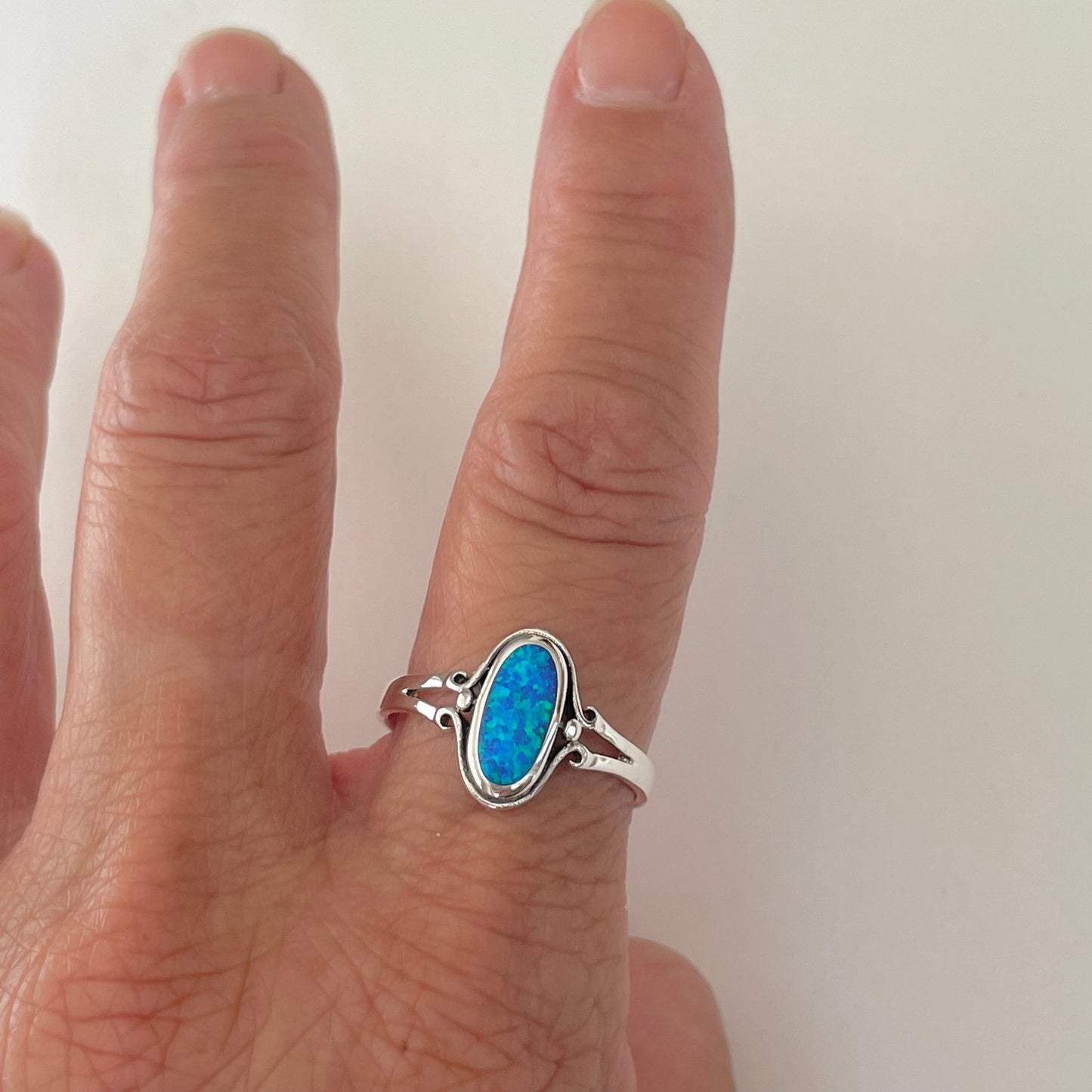 Sterling Silver Oval Blue Opal Ring, Boho Ring, Oval Ring, Silver Ring, Boho Ring, Opal Ring, Statement Ring, Love Ring