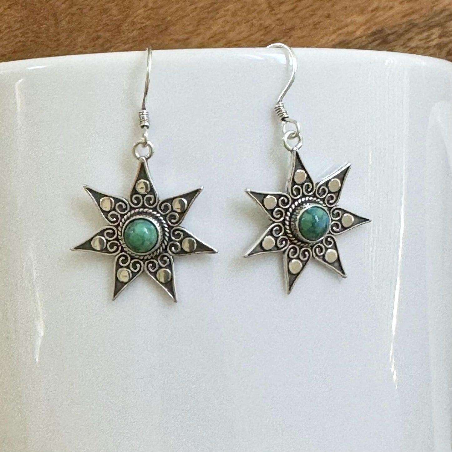 Sterling Silver Star Earrings, Turquoise Star Earrings, Silver Star Earrings, Silver Turquoise Earrings, Promise Silver Star Earrings.