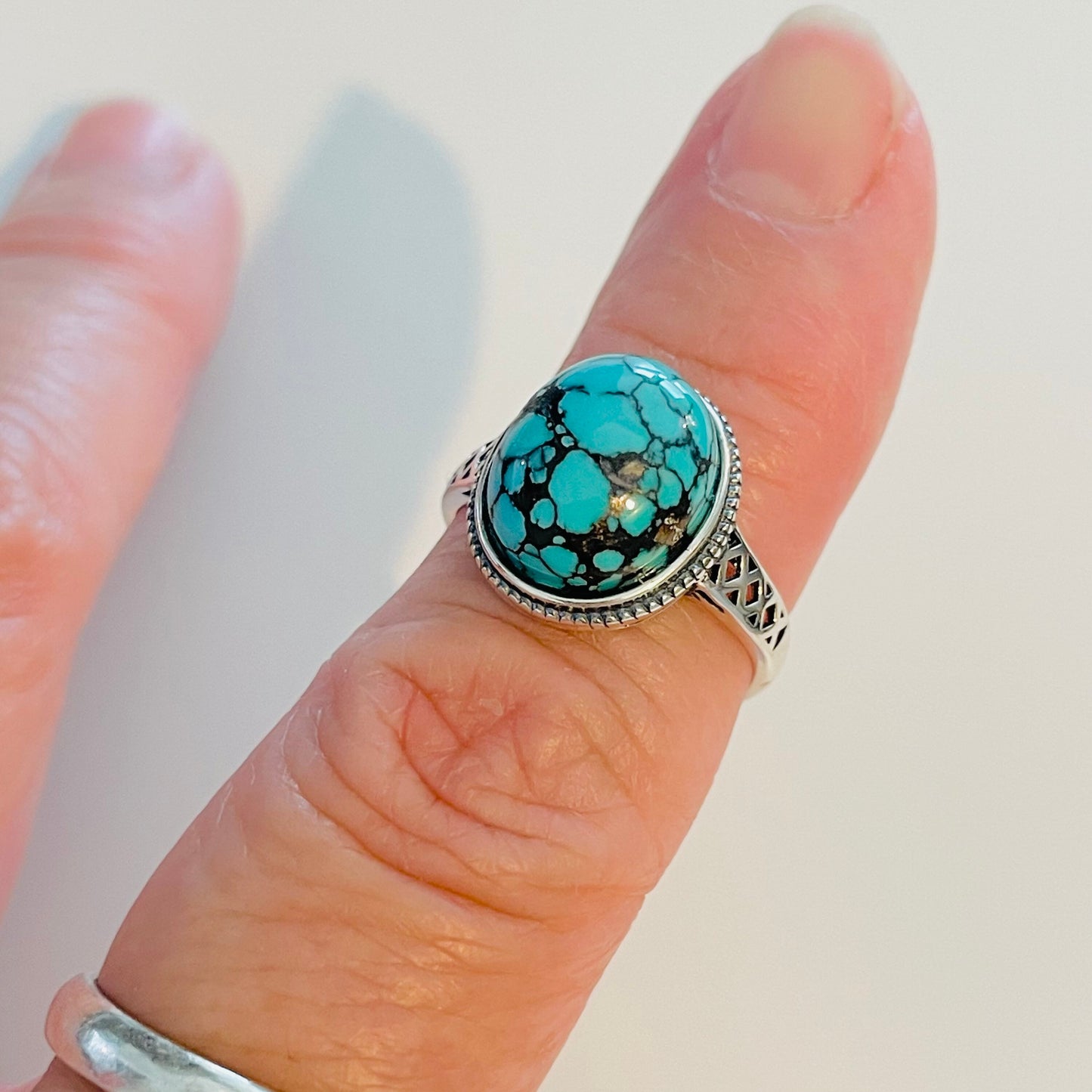 Sterling Silver Turquoise Ring Different Side Patterns / Styles, Promise Ring, Boho Ring, Statement Ring, Bail Style, Silver Turquoise Ring.