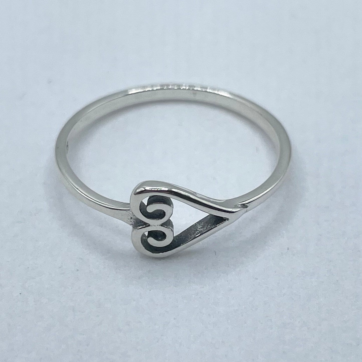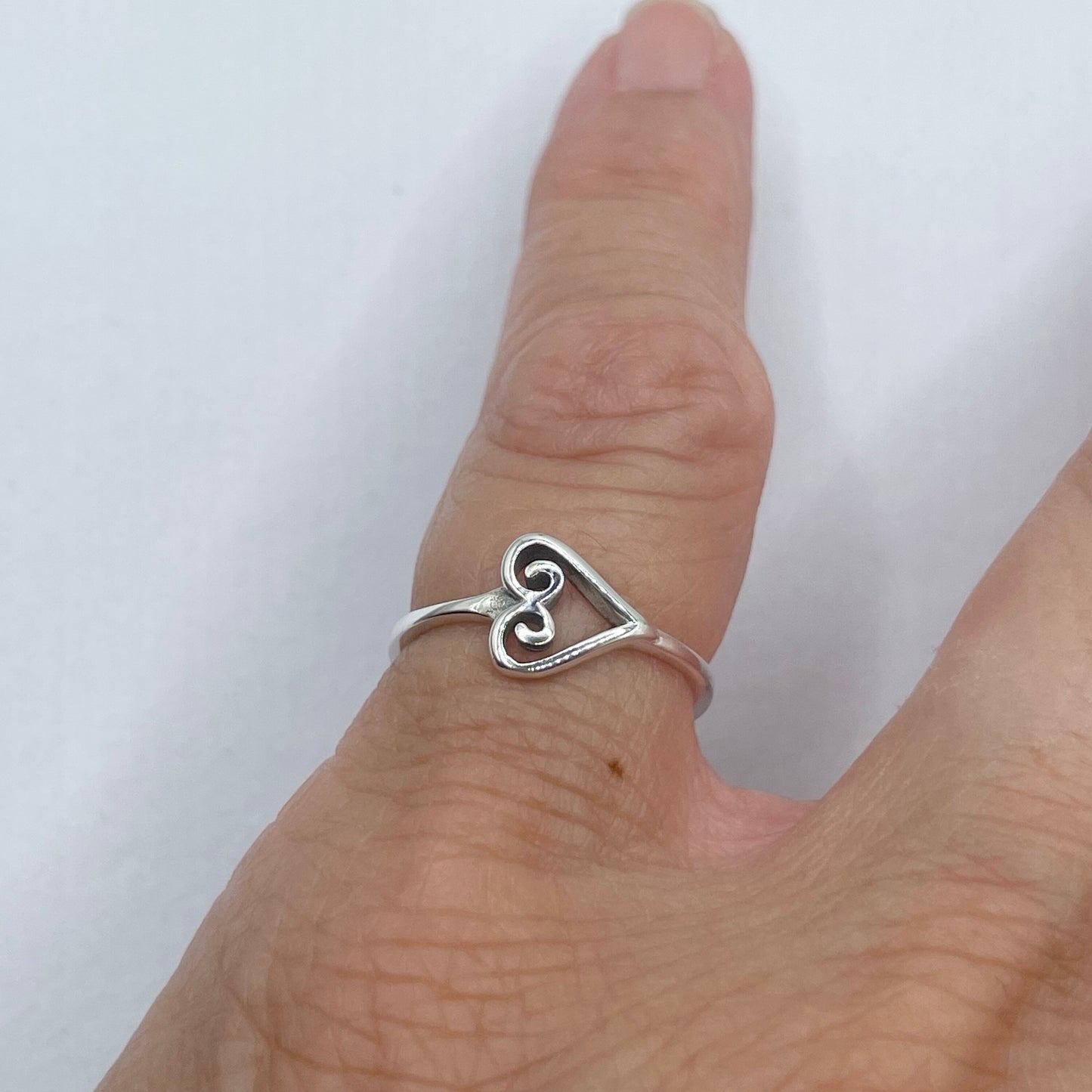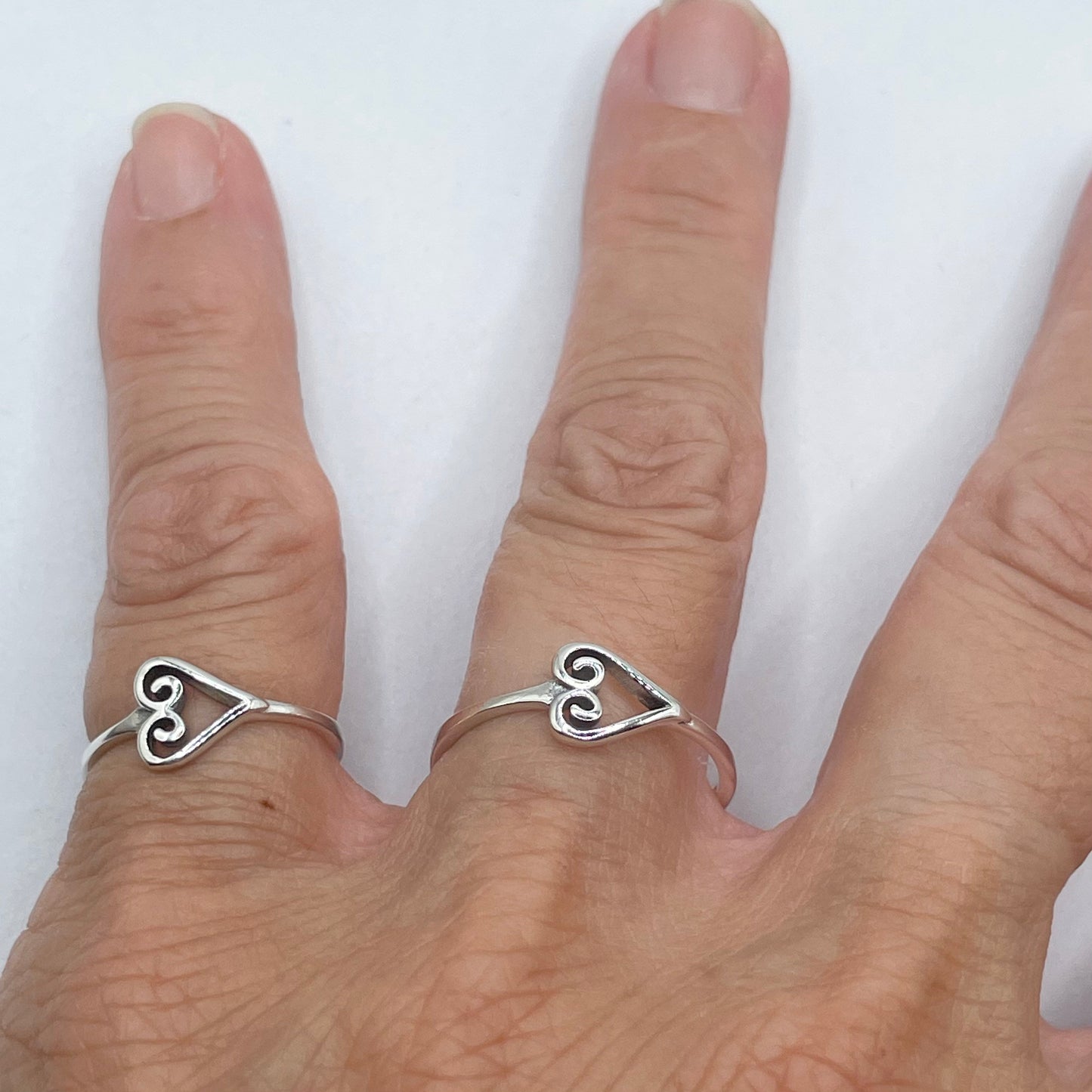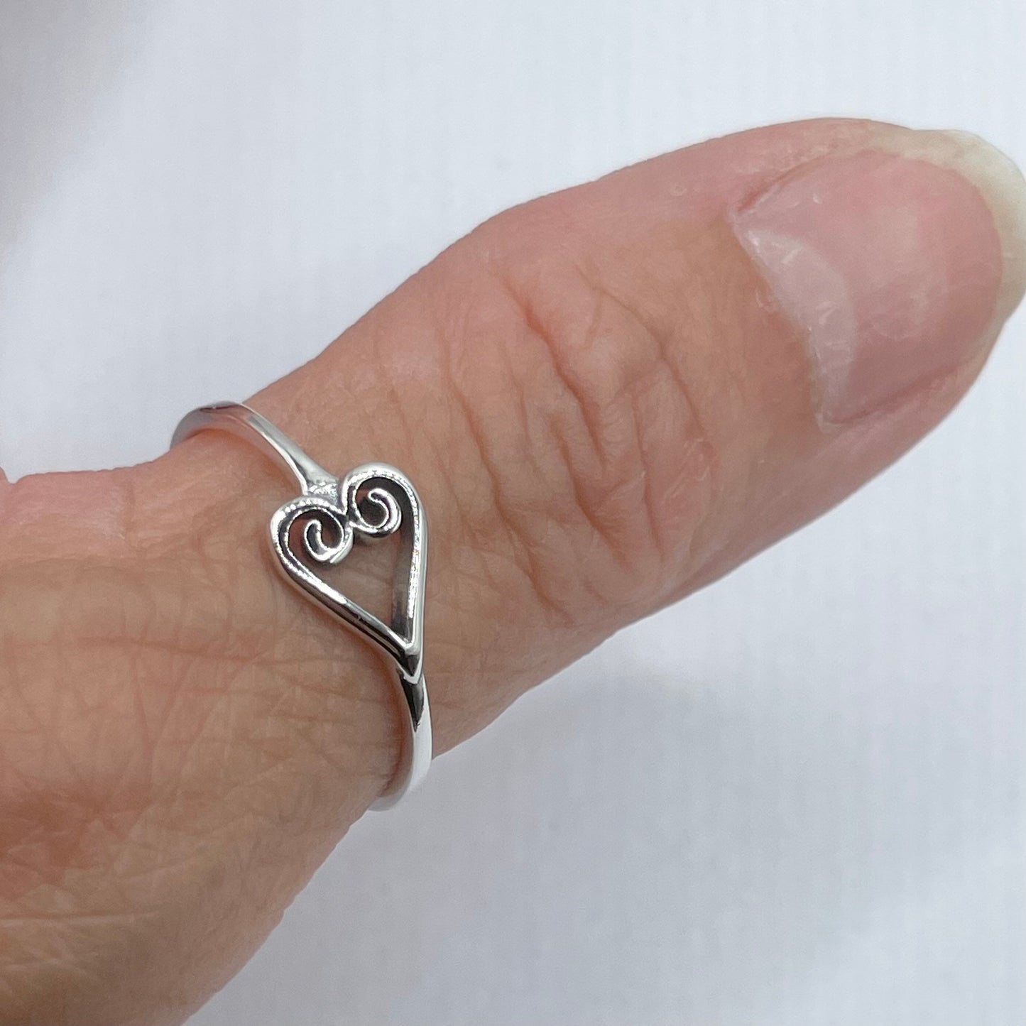 • Sterling Silver Swirl Heart Ring, Dainty Ring, Heart Ring, Swirl Ring, Love Ring, I Love You, Thank You Ring, may be worn on any finger, as a midi ring, or as a toe ring.